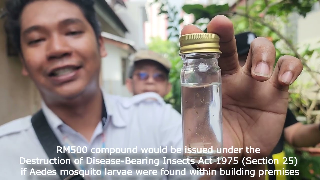 Specimens have been taken for laboratory tests to determine if the larvae were Aedes mosquitoes. A RM500 compound would be issued under the Destruction of Disease-Bearing Insects Act 1975 (Section 25) if Aedes mosquito larvae were found within building premises.
