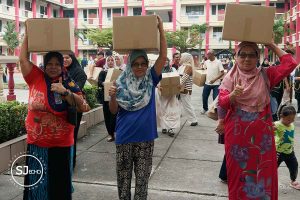 Goodyear Court 6 community leader Puan Azliana and her team identified the beneficiaries and coordinated the smooth collection and distribution of aid at the school grounds, assisted by Lions and Leos from nearby schools.
