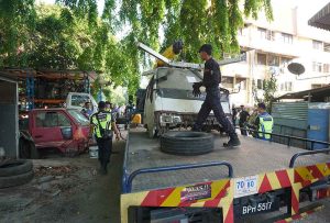 The afternoon raid involved various departments from MBSJ, Bandar Sunway police and officers from the Petaling Land Office. Six vehicles and one lorry head were towed away while an assortment of workshop equipment were also seized.