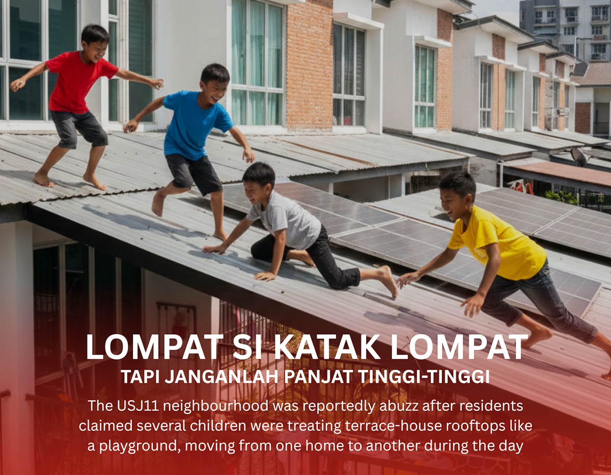 The USJ11 neighbourhood was reportedly abuzz after residents claimed several children were treating terrace-house rooftops like a playground, moving from one home to another during the day. Some residents also recorded video clips and shared them with the police and the local community, warning that one slip could have led to a fall or a roof giving way.